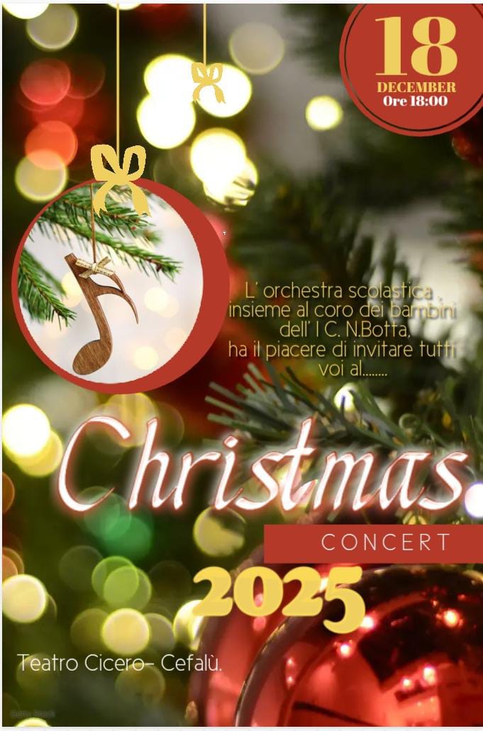 L’orchestra scolastica insieme al coro dei bambini dell’I.C. Botta vi invita a partecipare al concerto di Natale che si svolgerà il 18 dicembre 2025 alle ore 18.00 presso il Teatro Cicero di Cefalù.